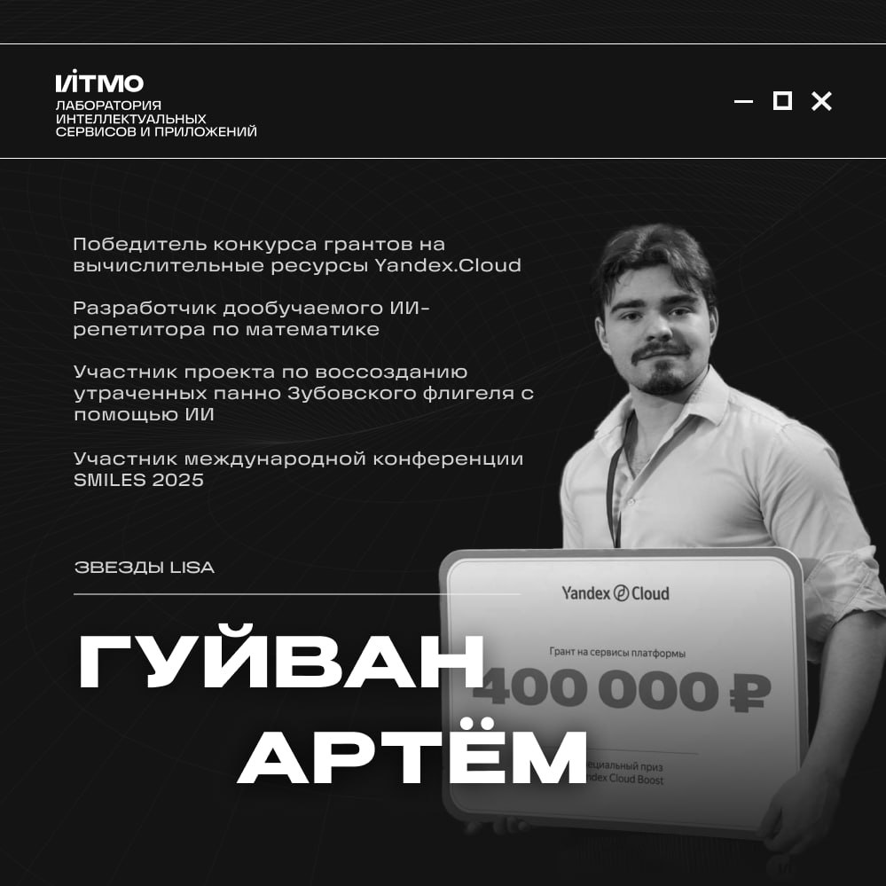 Артём Гуйван — молодой и инициативный разработчик LISA, который нашёл своё место в мире стартапов и искусственного интеллекта.